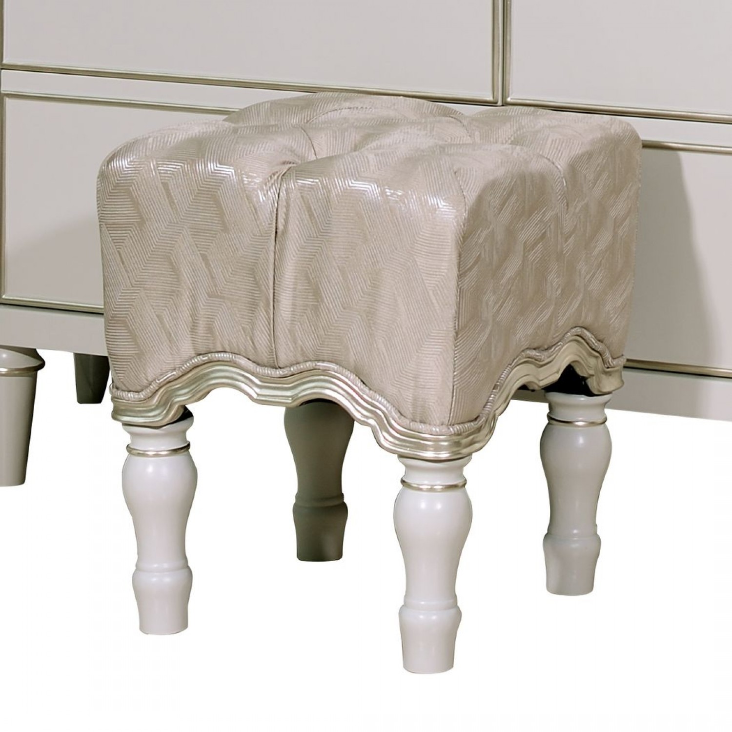 Пуф Marquise Art выполнен из МДФ и обтянут прочной бархатистой тканью с потайным рисунком. Плавные рельефы окантовки и золотистые элементы отсылают к королевской классике. Пуф становится заключительным дополнением коллекции и отлично впишется в спальню или будуар, располагаясь перед туалетным столиком.