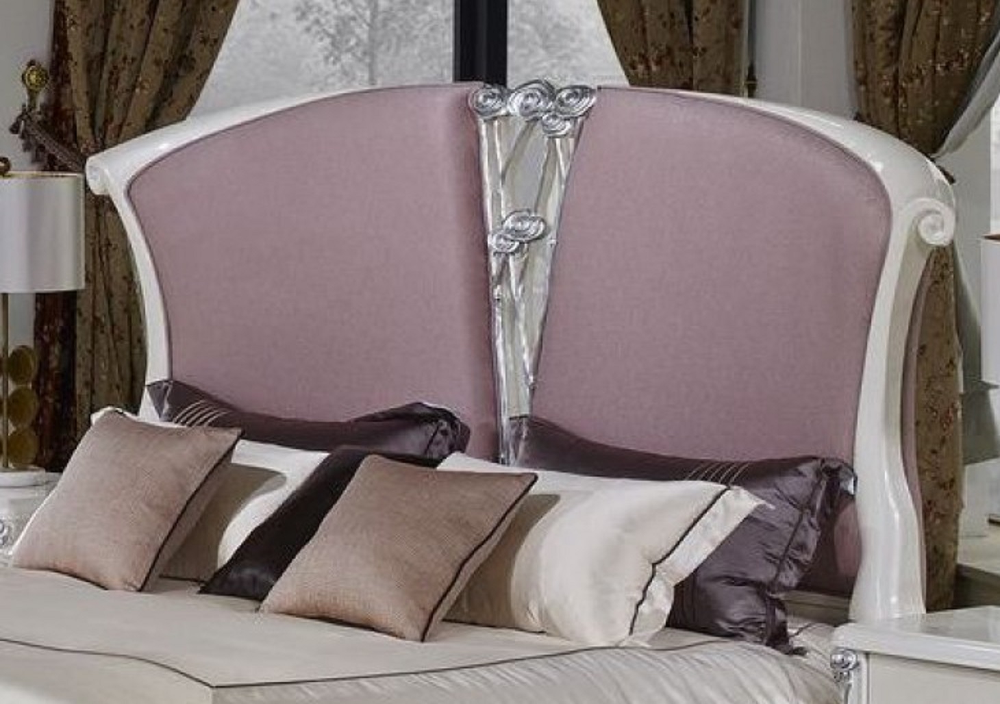 Спальня Sharlyn выполнена в стиле Ар-нуво. Стиль ар-нуво – это воздержание от прямых линий и углов, использование в дизайне «треугольных роз», которые являются визитной карточкой коллекции! Р астительный мир, флористический орнамент стали ключевыми элементами ар-нуво, его визиткой в мире искусства. Спальня Sharlyn выглядит исключительно натуральной, украшенной сложной резьбой. Изголовье кровати обтянуто тканью с серебрянной ниткой, что само-собой является украшением! Потрясающие резные элементы в зеркале и прикроватной кушетке создают в комнате эффект первозданной чистоты природы, не тронутой человеком и «солнце» ар-нуво непременно озарит и интерьер вашего дома с нашей спальней Sharlyn.