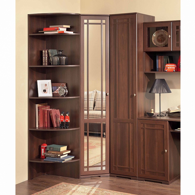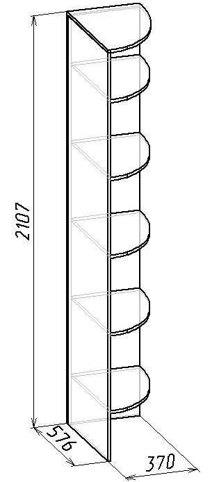 Стеллаж с лекальными полочками гармонично завершит шкафную группу высотой 2107 мм. Из одного комплекта деталей собирается на глубину 400 мм и 590 мм, что делает полку универсальной для любой композиции.
