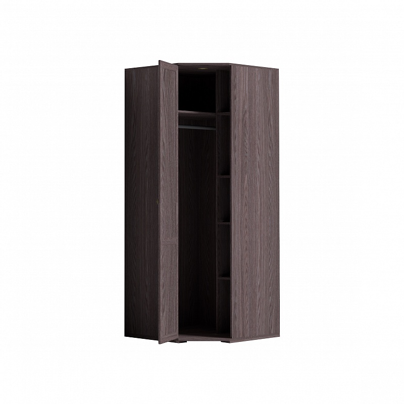 Используйте углы в комнате рационально! Угловой шкаф оснащен стационарной штангой длиной 81 см, полочками для белья и автоматической подсветкой, которая включается, если шкаф открыт. Этот Шкаф комплектуется Фасадом Стандарт или Зеркало ( Sherlock 10 Шкаф угловой + ФАСАД Зеркало ), с глухой дверью или зеркальной соответственно. Фасад углового шкафа изготавливается только в исполнении «левый» (определяется по расположению петель). По своим габаритам угловой шкаф подходит для компоновок глубиной 590 мм. Например, поставьте рядом с ним Sherlock 14 Полка угловая .