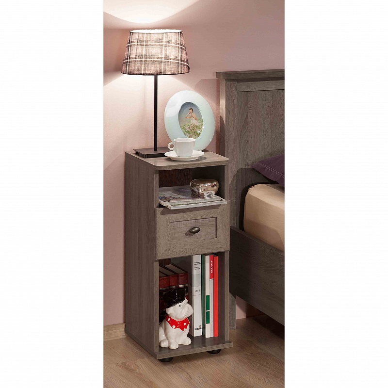 Высокая и узкая (всего 282 мм) прикроватная тумбочка в английском стиле идеально дополнит классический интерьер спальни. Столешница тумбы со скруглёнными углами. Выдвижной ящик глубиной 12 см на шариковых направляющих, которые обеспечивают минимальный люфт и плавность хода. В высокой нише можно хранить планшет, высокие журналы и альбомы. Чтобы не занимать место на столешнице, мы рекомендуем навесить над тумбочкой бра или модные потолочные светильники на длинных подвесах. Более привычной на вид альтернативой узкой тумбе будет Sherlock 64 Тумба прикроватная шириной 400 мм и высотой 565 мм.