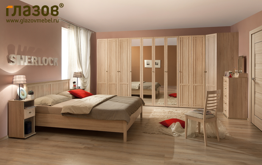 Светлый вместительный комод в спальню с четырьмя ящиками рачительная хозяйка всегда найдет чем наполнить. Повесьте над ним Sherlock 7 Зеркало или установите Sherlock 56 Трюмо либо Sherlock 55 Трюмо с ящиками - и эргономичный вариант туалетного столика готов. Ящики глубиной 14 см выдерживают нагрузку до 20 кг каждый.