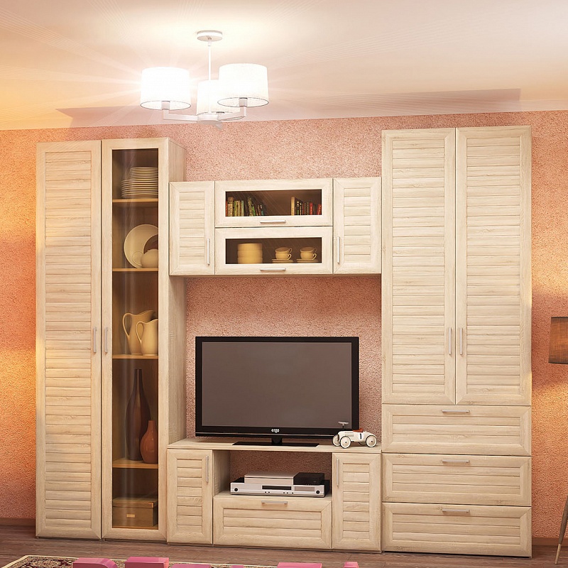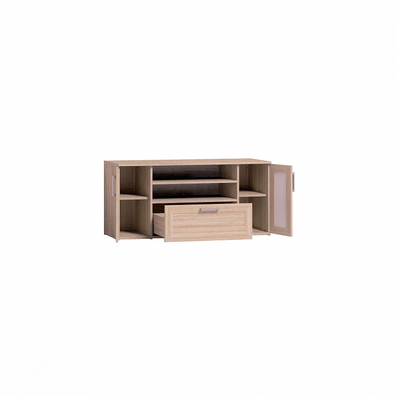 3 Òóìáà ÒÂ – õîðîøèé âàðèàíò äëÿ îðãàíèçàöèè ìåñòà ïîä ÒÂ äèàãîíàëüþ äî 54”. Â íèøàõ øèðèíîé 665 ìì ëåãêî ðàçìåñòèòñÿ àóäèî è âèäåî-àïïàðàòóðà. Âûäâèæíîé ÿùèê íà øàðèêîâûõ íàïðàâëÿþùèõ ïîëíîãî âûäâèæåíèÿ âûäåðæèâàåò íàãðóçêó äî 25 êã. Çà äâåðöàìè áîêîâûõ ôàñàäîâ ñêðûâàåòñÿ íèøà ñ ïîëêîé, ðåãóëèðóåìîé ïî âûñîòå.