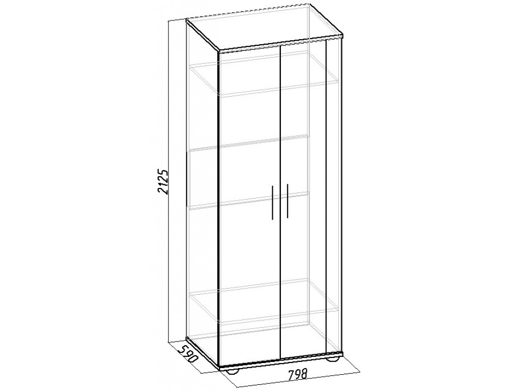 Платяной шкаф распашной. Благодаря своей глубине (59 см) комплектуется стационарной штангой во всю длину шкафа (75 cм). На ней можно развесить 7-9 плечиков с зимней одеждой. В наполнении шкафа есть также две полки - сверху и снизу, для большей вместительности они регулируются по высоте.
