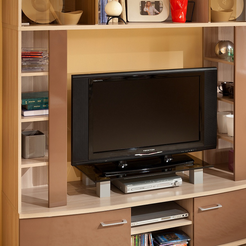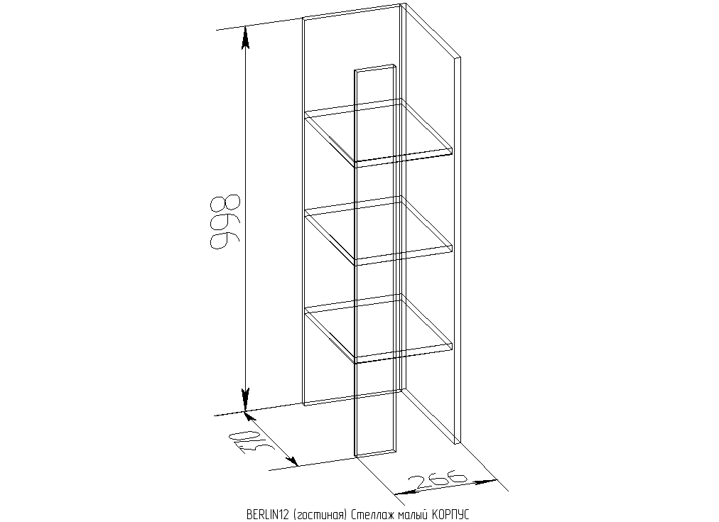 Òðè àêêóðàòíûå ïîëî÷êè íàñòîëüíîé ýòàæåðêè óâåëè÷èâàþò ïîëåçíóþ ïëîùàäü ïèñüìåííîãî ñòîëà èëè òóìáû ïîä òâ . Ïðè óñòàíîâêå äâóõ ñòåëëàæåé íà òóìáå ïîä Ò ìîæíî ðàñïîëîæèòü òåëåâèçîð äèàãîíàëüþ äî 43". Ñâåðõó íàä ñòåëëàæîì ìîæíî ðàçìåñòèòü íàâåñíûå ìîäóëè - BERLIN 13 Øêàô íàâåñíîé è BERLIN 14 Ïîëêà íàâåñíàÿ .