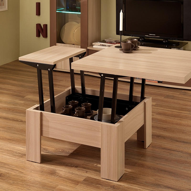 BERLIN 319 Стол-трансформер (складной) выпускается в декорах Ясень Шимо светлый и Венге . Он без усилий трансформируется в полноценный обеденный стол, рассчитанный для комфортной рассадки 6 человек. Для комфортной эксплуатации модуля необходимо соблюдать ограничение: нагрузка на консольную часть стола - не более 20 кг. Современный механизм трансформации, используемый для раскладывания, обеспечивает легкость регулировки размеров стола, исходя из потребностей сидящих за ним людей, так как столик легко фиксируется и в промежуточном положении. Просторная ниша для подноса и чашек внутри столика экономит его рабочее пространство.