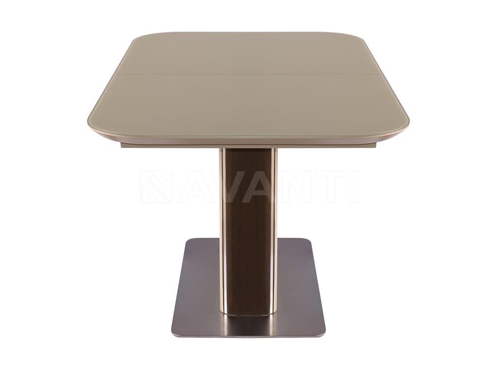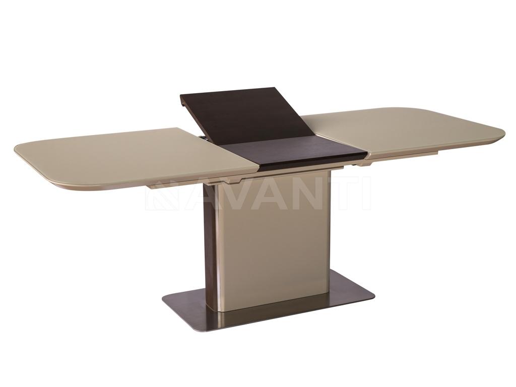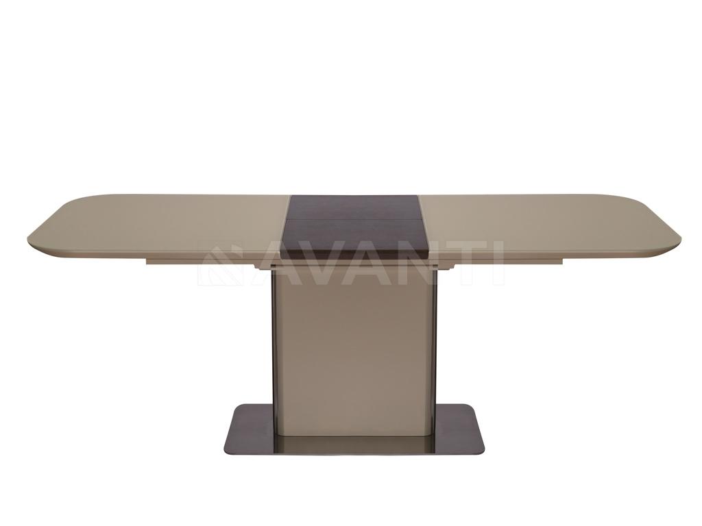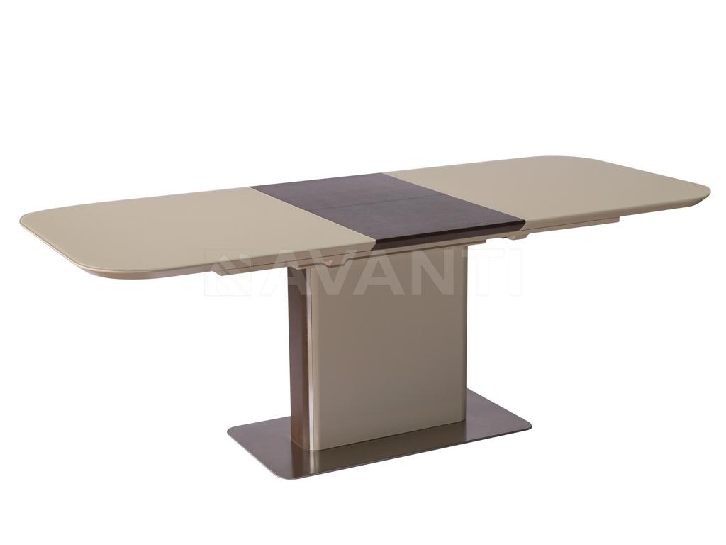 Лаконичная форма бежевого лакового стола ALFA с контрастной вставкой сразу привлекает внимание чёткими линиями, переходящими в закруглённые углы. Столешница представляет собой комбинацию бежевого закаленного сатинированного стекла, контрастной вставки под орех и бежевого матового лака. Этот современный обеденный стол органично впишется в интерьер даже небольшой гостиной. Вставки из матовой стали на колонне отлично гармонируют со стальным матовым основанием. Раскладной механизм позволяет в одно движение увеличить размер столешницы со 160 до 210 cм.