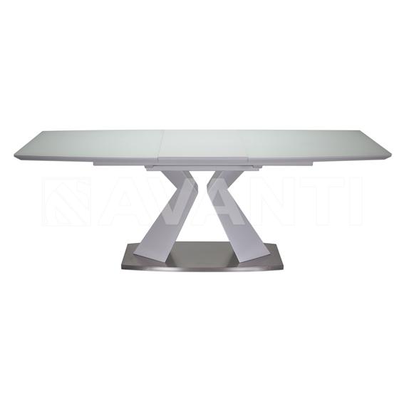 Обеденный стол FLEX имеет оригинальный дизайн ноги-колонны: вместо классических четырех ножек столешницу поддерживает X-образный опорный элемент. Такая конструкция не только красива, но и функциональна, так как колонна не мешает сидящим за столом. Данная модель также имеет раздвижную столешницу, благодаря которой площадь столешницы в одно движение увеличивается на полметра. Основание стола выполнено из матовой стали, что придает модели элегантную законченность.