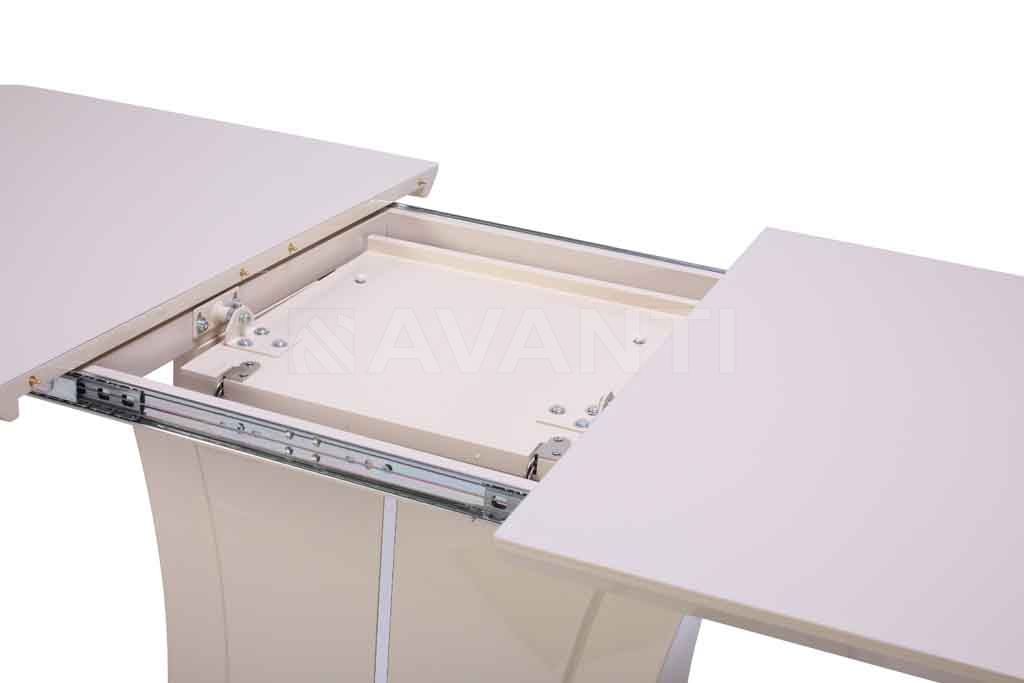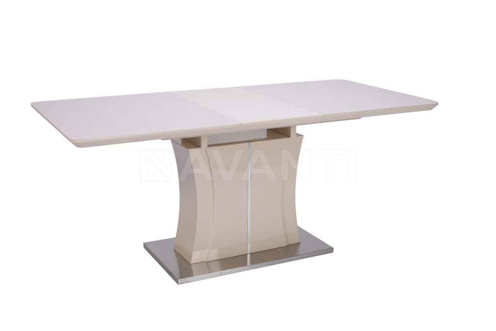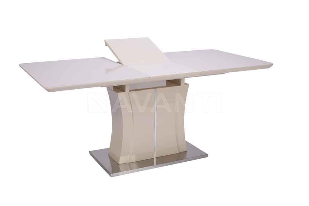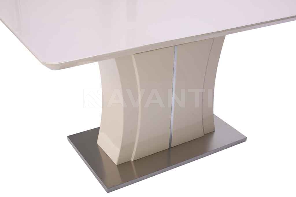 Небольшой лаковый стол RAINBOW обращает на себя внимание и запоминается благодаря эффектной колонне-основанию необычной формы, декорированной металлической вставкой. Стальная база повторяет форму столешницы, покрытой стеклом. Благодаря вставке-бабочке размер столешницы увеличивается на 40см.