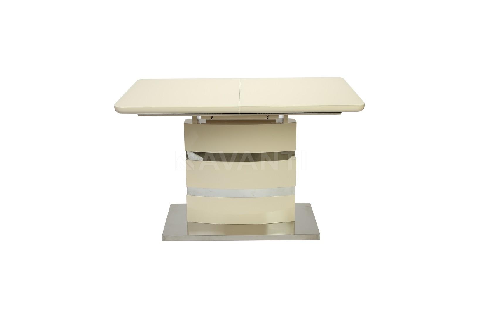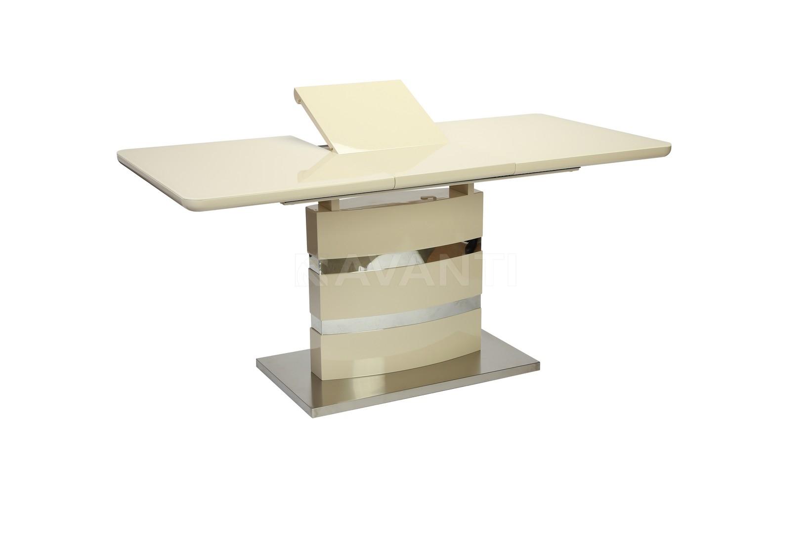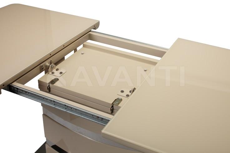 Стол обеденный раскладной SKY (1200-1600x800x760) ваниль (со стеклом)