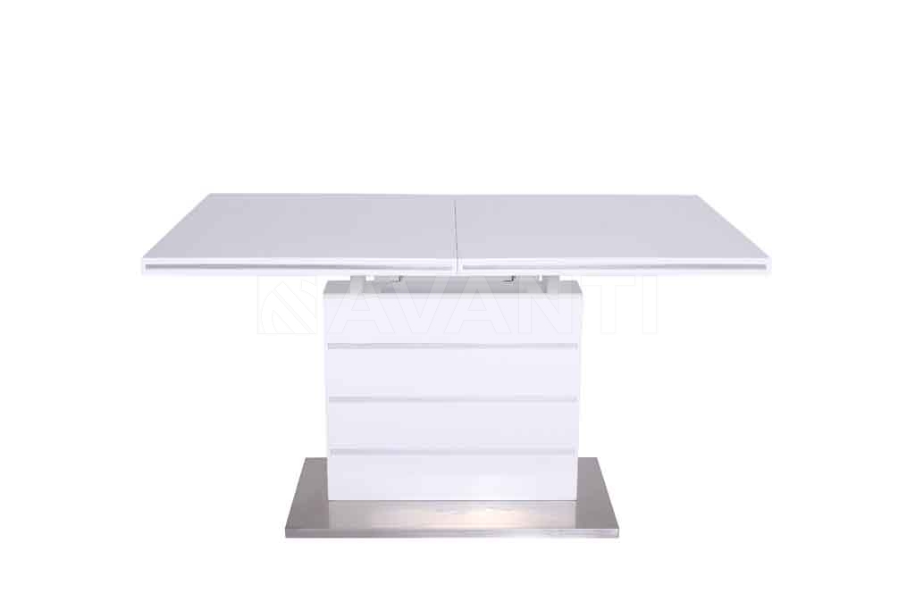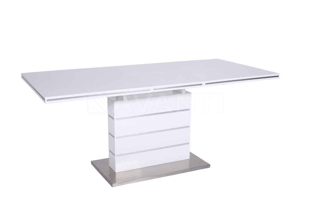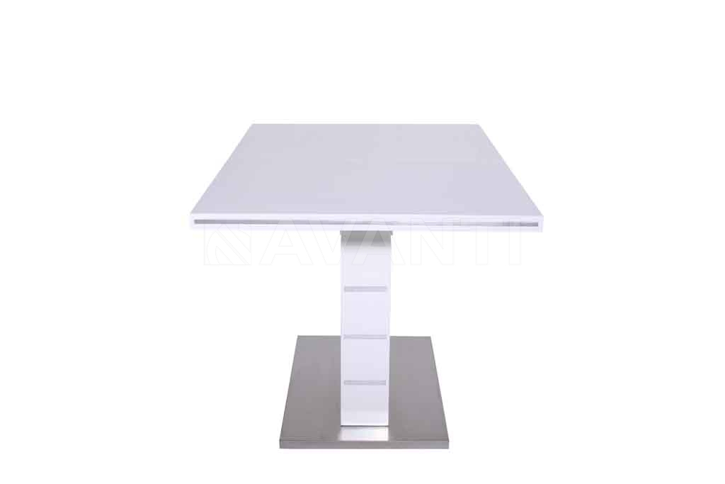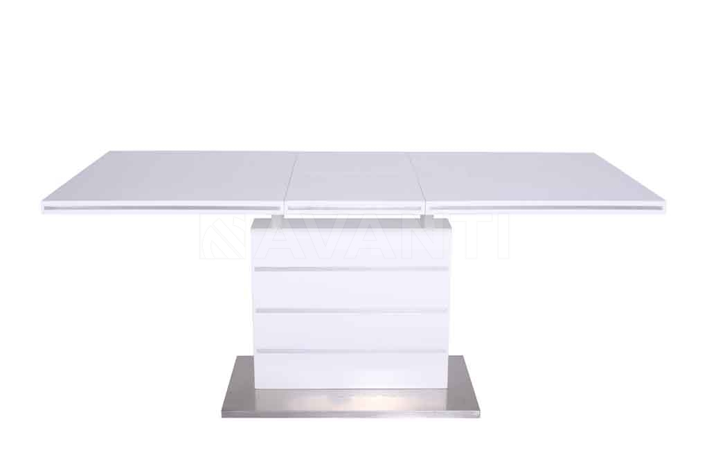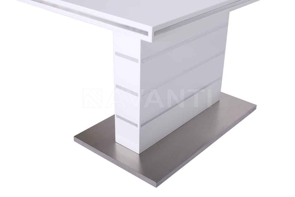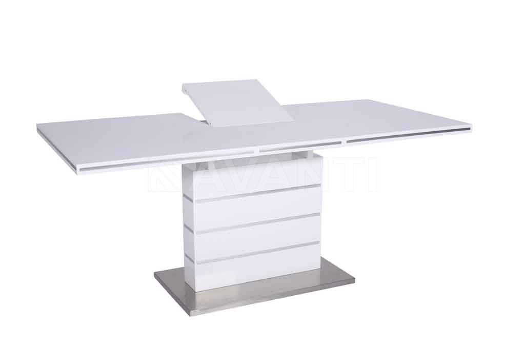 Небольшой обеденный стол STAR со столешницей из окрашенного мдф прекрасно подойдет для небольшой кухни или столовой - в сложенном виде столешница имеет длину всего 140см. Лаконичное стальное основание повторяет форму столешницы и органично сочетается с металлическими декоративными вставками колонны. Благодаря вставке в 40см площадь стола увеличивается до 180см, что позволит комфортно разместить за столом еще пару гостей.