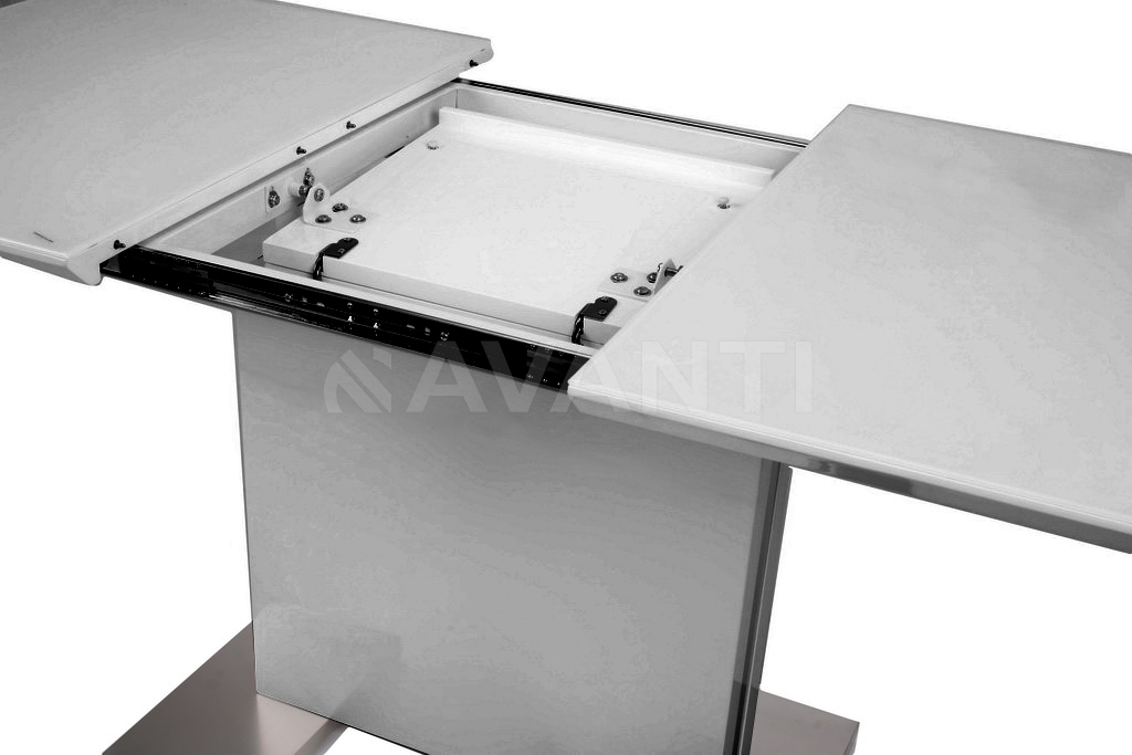 Лаконичный стол SURF благодаря своему компактному размеру отлично подойдет даже для небольшого помещения. Два стильных металлических основания прекрасно гармонируют с металлической вставкой колонны. Благодаря вставке-бабочке поверхность стола может быть увеличена на 40см, что позволит разместить за столом еще пару гостей.