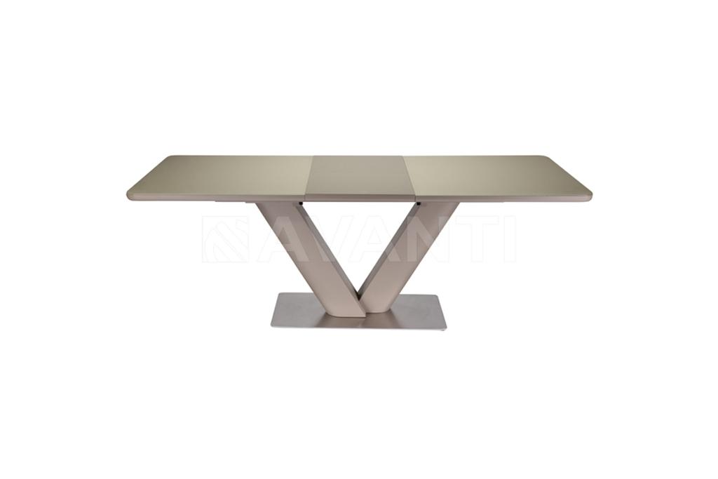 Обеденный стол VICTORY создан для столовых и гостиных в современном стиле. Изюминкой стола выступает его V-образная колонна, благодаря которой он и получил свое название. Столешница покрыта закаленным стеклом, которое не создает сложностей в эксплуатации и придает изделию изысканности. Вставка увеличивает длину столешницы на полметра в одно движение. Лаконичное металлическое основание завершает концепцию и подчеркивает современный стиль стола.