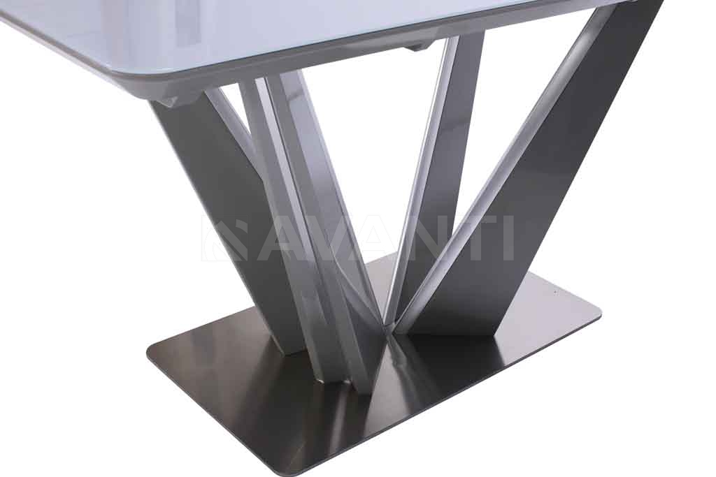 Ñîâðåìåííûé îáåäåííûé ñòîë ATLANT ñðàçó îáðàùàåò íà ñåáÿ âíèìàíèå íåîáû÷íîé ôîðìîé áàçû, êîòîðàÿ ñîñòîèò èç ÷åòûðåõ êîëîíí íåîáû÷íîé ôîðìó. Íà áàçó îïèðàåòñÿ ñòîëåøíèöà, ñî÷åòàþùàÿ â ñåáå ëàê è çàêàëåííîå ñòåêëî. Âûïîëíåííàÿ èç ÌÄÔ âñòàâêà ïîçâîëÿåò óâåëè÷èòü ñòîëåøíèöó íà 50 ñì. Ñòàëüíîå îñíîâàíèå ïîâòîðÿåò ïðÿìîóãîëüíóþ ôîðìó ñòîëåøíèöû.