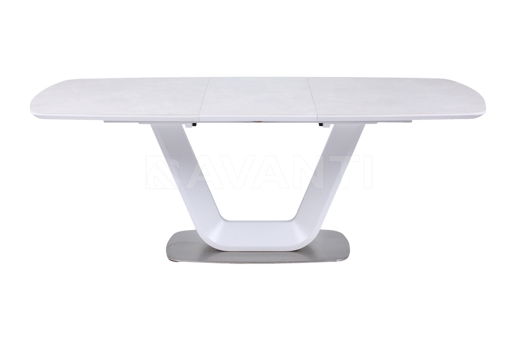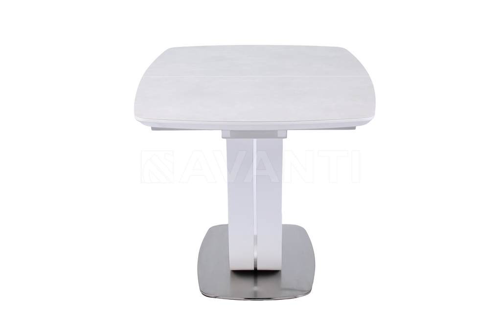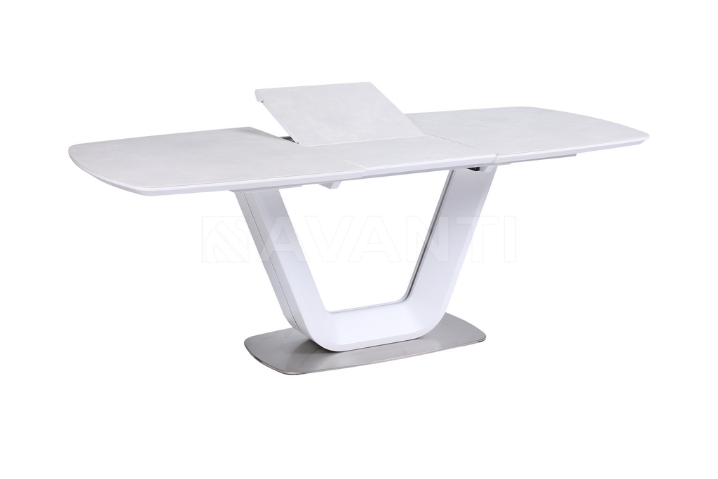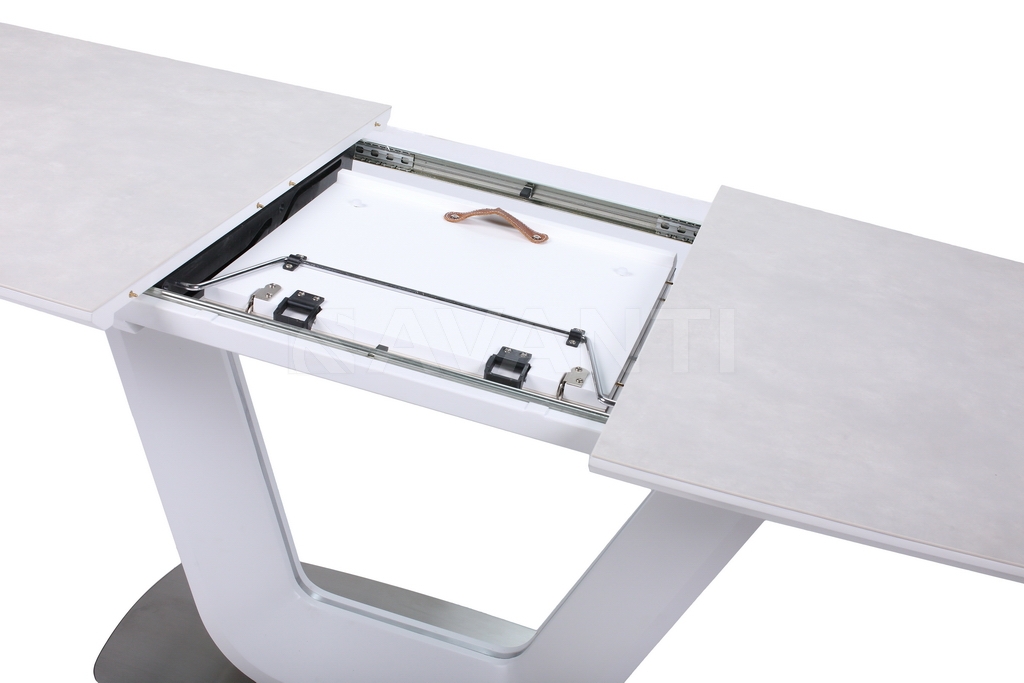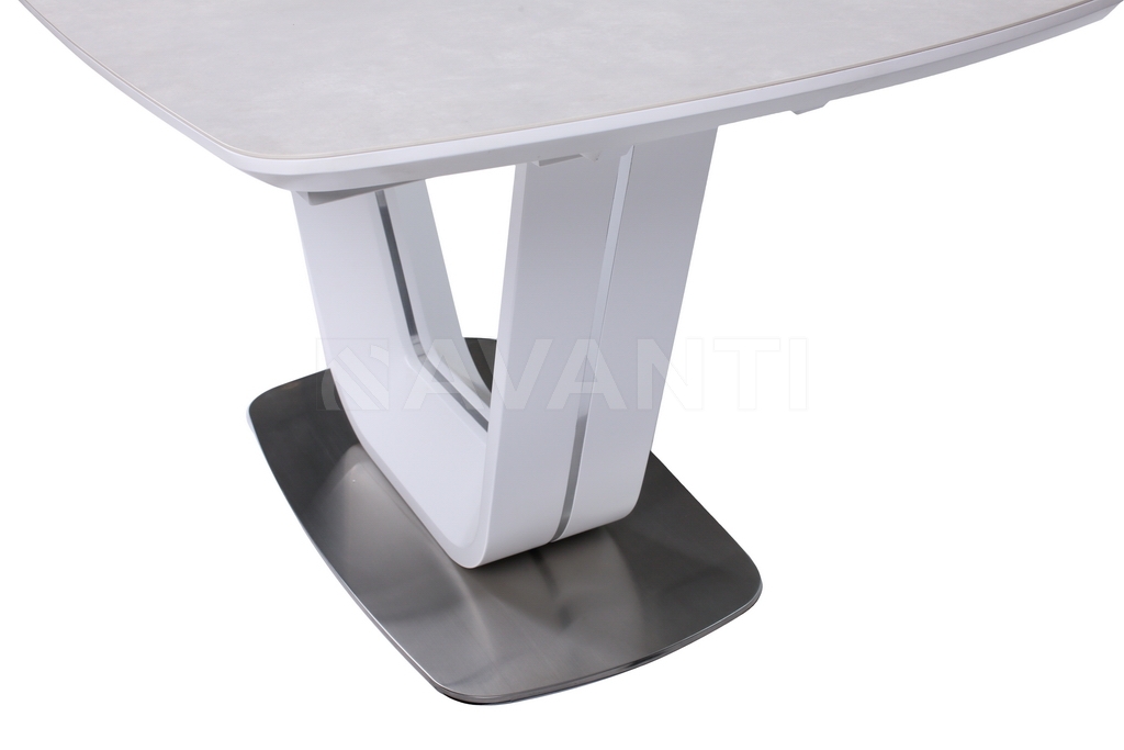 Стильный обеденный стол OASIS прекрасно дополнит просторную кухню, гостиную или столовую в современном стиле. Модель отличается изяществом и скругленными углами, которые присутствуют даже в колонне. Столешница представляет собой керамическое покрытие. Лаконичное металлическое основание полностью повторяет форму столешницы. Выполненная из керамики вставка позволяет увеличить столешницу на 50 см.
