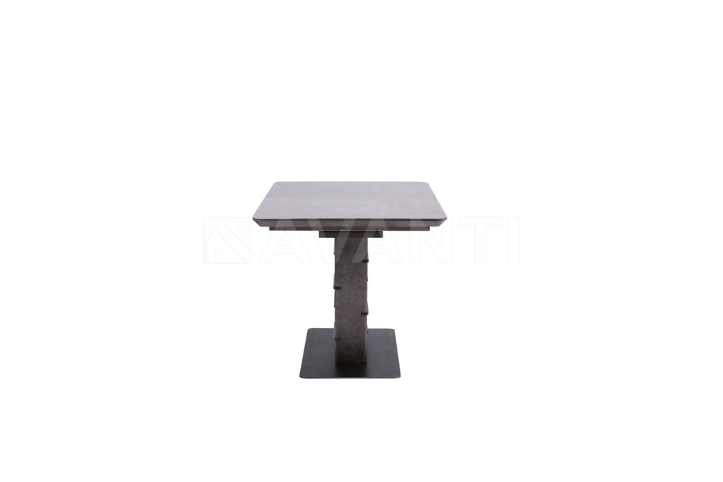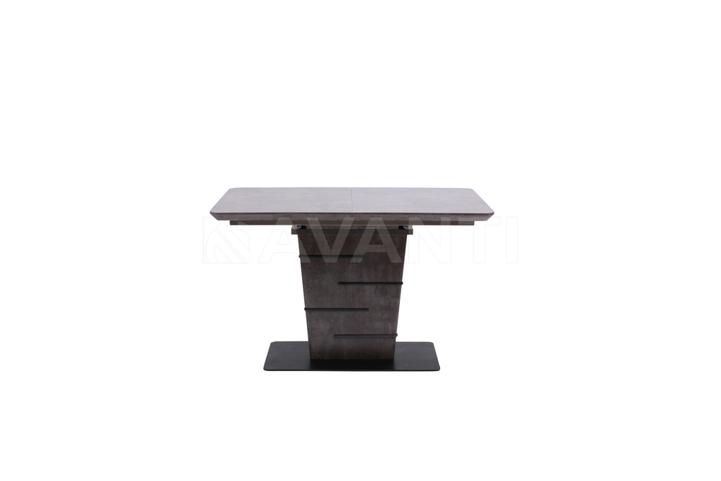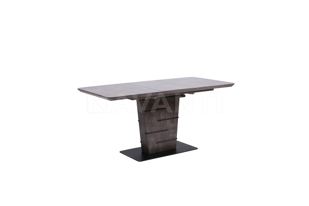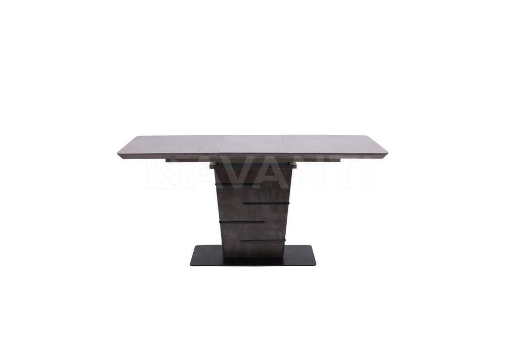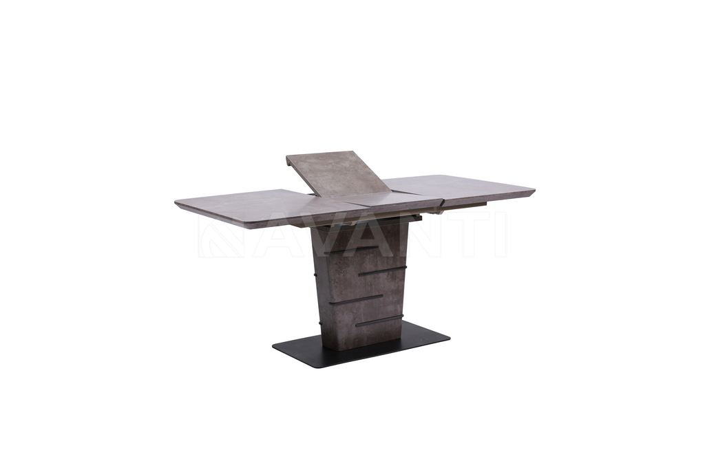 Стильный обеденный стол FLIP обращает на себя внимание благодаря оригинальному дизайну. Прямоугольная столешница на 1м 40см прочно фиксируется на трапецевидной колонне, декорированной металлическими вставками, которые прекрасно гармонируют с плоским металлическим основанием. Колонна и столешница покрыты меламином, имитирующим рисунок натурального камня. Благодаря вставке-бабочке, размер столешницы может быть увеличен до 180см в одно движение.