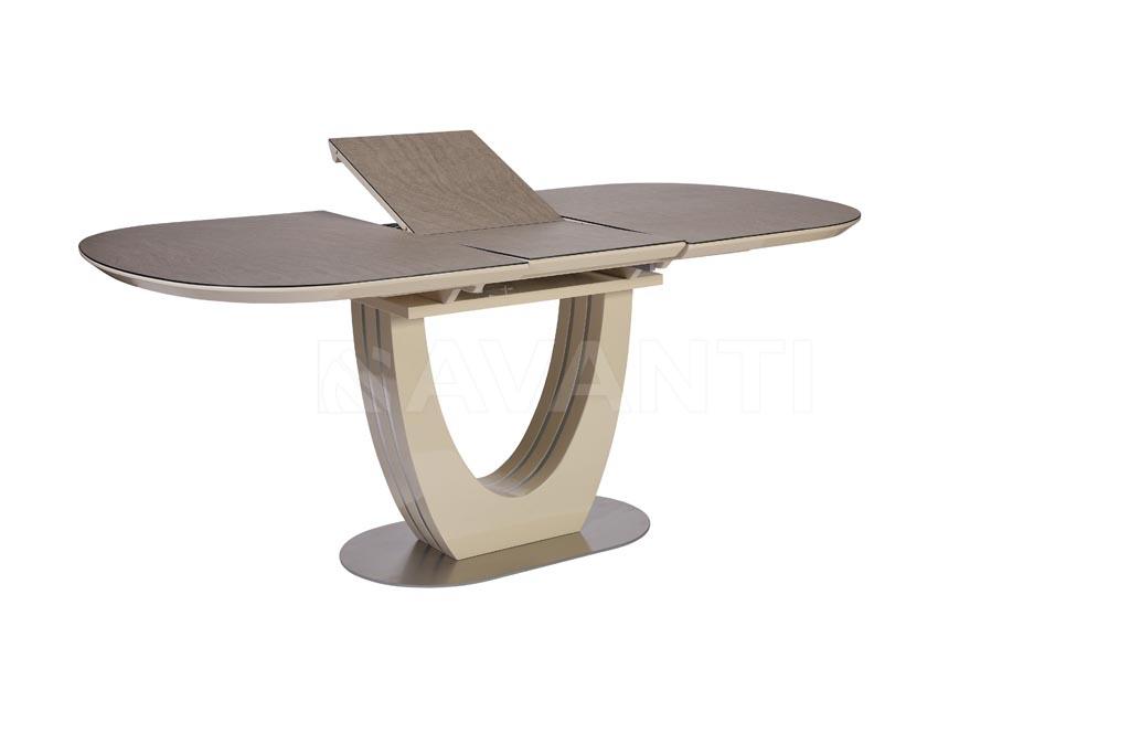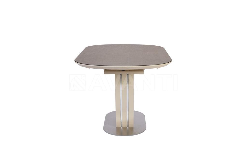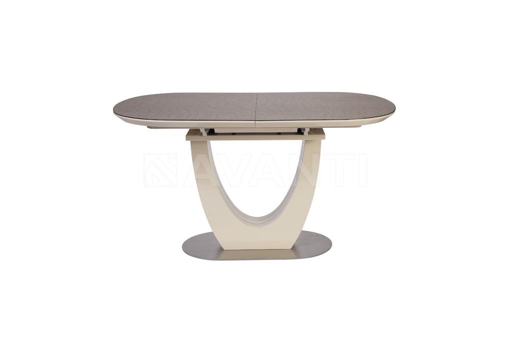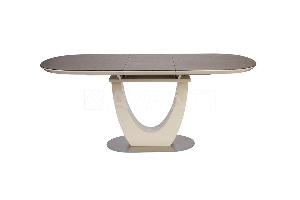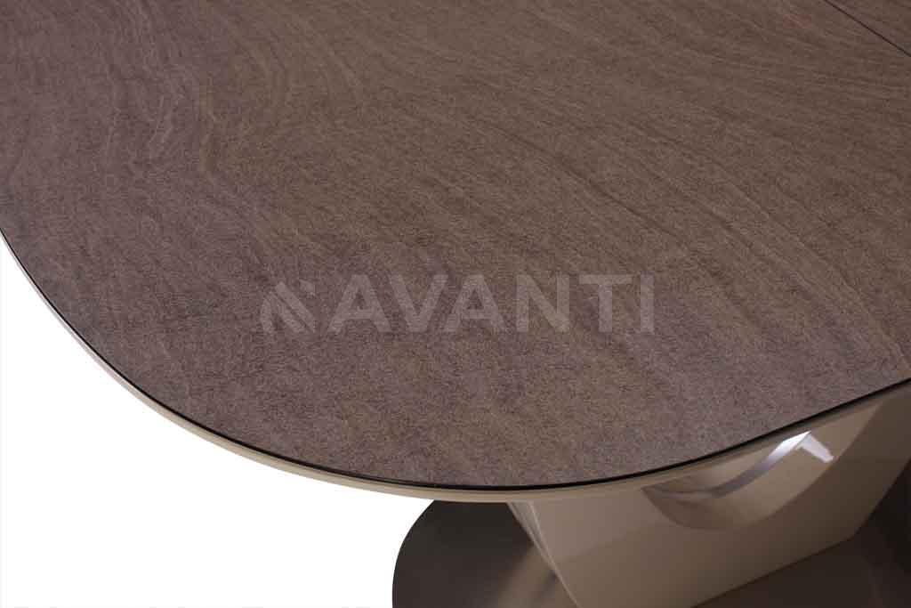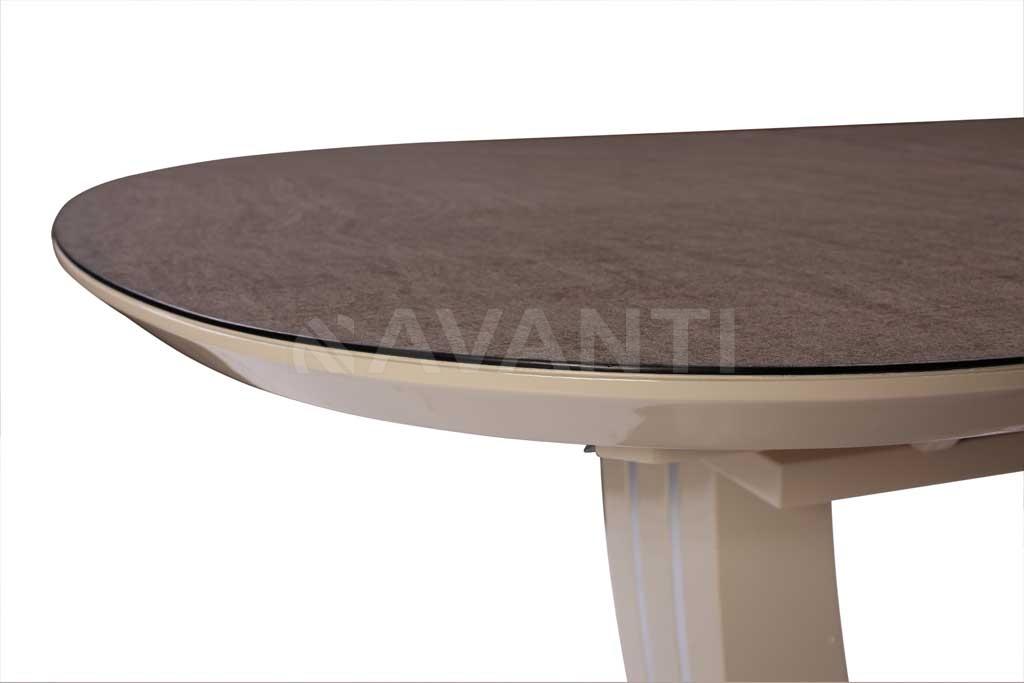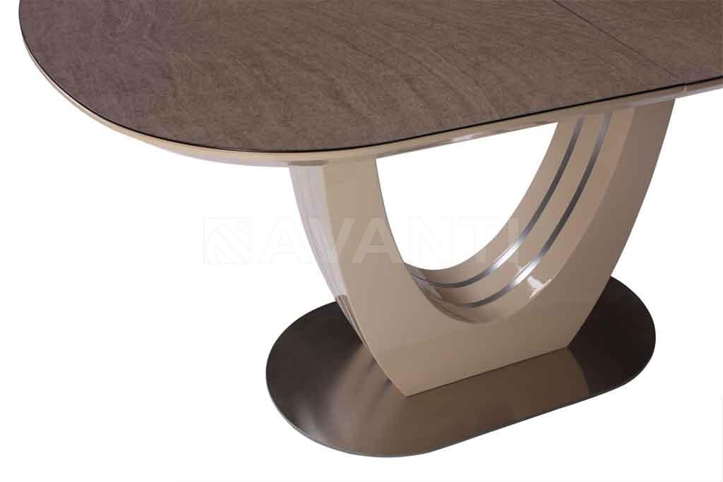 Современный обеденный стол AURA блестяще совмещает в себе стильный дизайн и функциональность. Изящная колонна из лакированного МДФ с металлическими декоративными вставками поддерживает столешницу, выполненную из МДФ и покрытую меламином. Основание выполнено из металла. Благодаря вставке-бабочке в цвет столешницы размер стола может быть в одно движение увеличен до 180см, что позволит разместить за ним еще пару Ваших гостей.