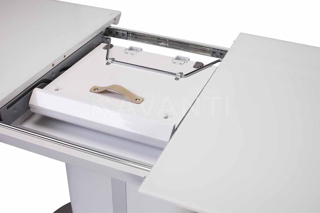 Стол обеденный раскладной DISCOVERY белый лак со стеклом