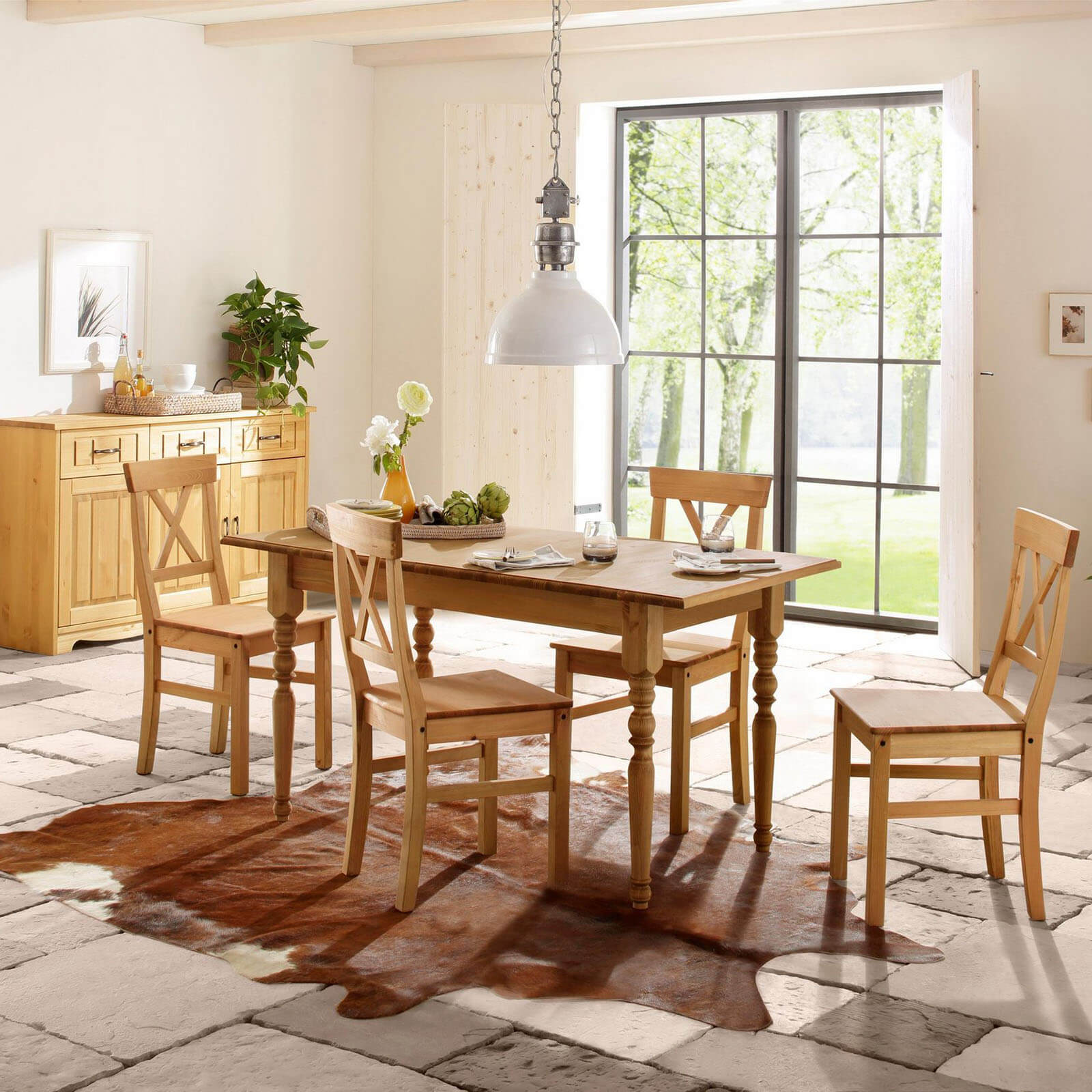 Стол обеденный "Мерида" 120 без вставки (бейц/масло) из массива сосны