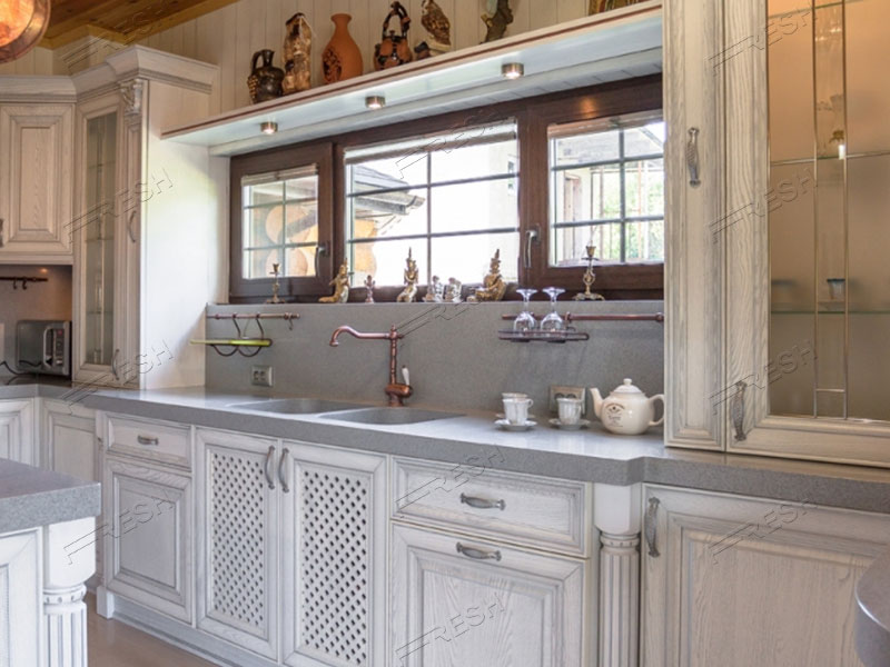 Кухня «Руджери» - одна из самых изысканных классических моделей, выполнена в аристократическом стиле. Утонченный дизайн и богатая отделка фасадов придает внешнему облику кухни торжественность, но в то же время не делает его чересчур вычурным или помпезным. Модели гарнитура свойственны прямоугольные, спокойные формы, разнообразное, но в то же время сдержанное декоративное оформление. Главным украшением по праву является оригинальное решение портала, который выполнен в виде небольшого камина. Благородство форм и изысканность линий, утонченность в каждой детали - все это нашло воплощение в данной модели. "Руджери" - элитная мебель, которая дарит ощущение праздника, дворцовой роскоши и шика.