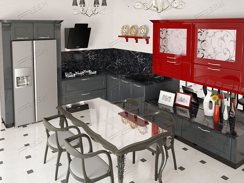 Для тех, кому надоел классический стиль, а к модерну не лежит душа, любителям ярких, эффектных интерьеров придется по душе данная линия мебели. Глянцевые фасады, ручки с горным хрусталем, яркие цвета мебели и Вы получаете пышный, запоминающийся интерьер. Красный, золотой и пурпурный тона, изысканные узоры. Столешницы и раковины из дорогих материалов, таких как натуральный и искусственный камень. Версаль выбирают те, для кого движение вперед - приоритет, потому, что он, уже сам по себе является напоминанием о великих мировых переменах!