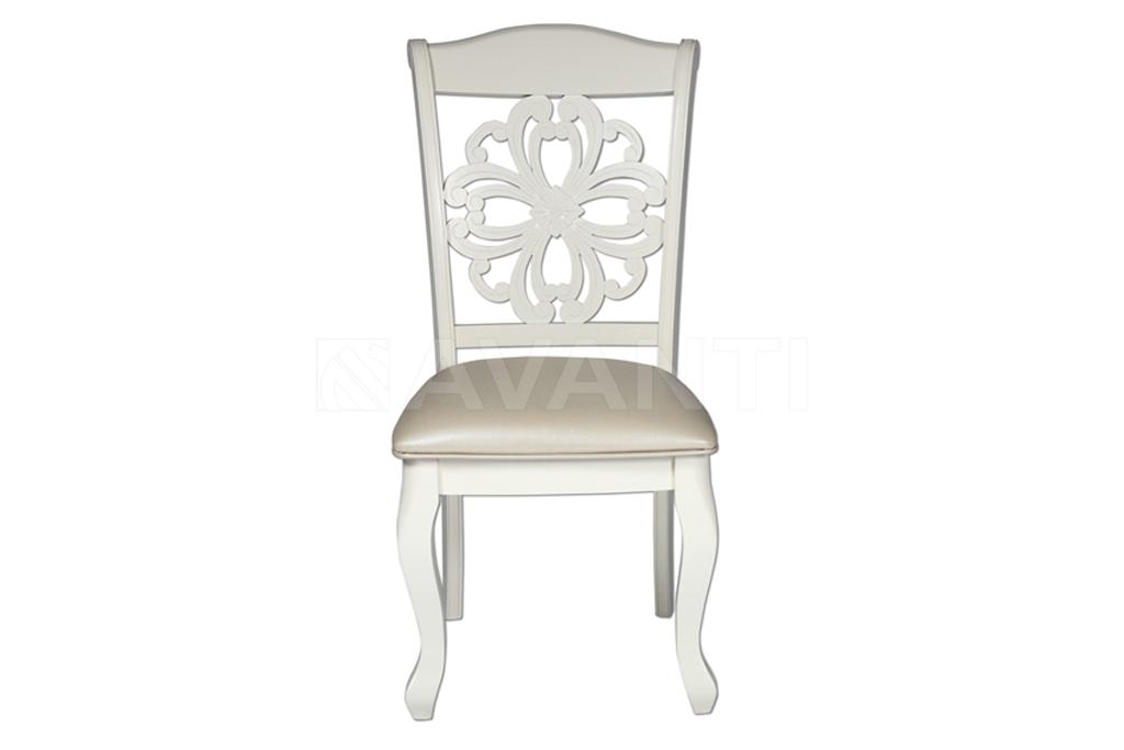Белый обеденный стул VIRGINIA будет прекрасным дополнением интерьера просторной столовой и гостиной в классическом стиле. Изящная деревянная резьба спинки в виде цветка и мягкое сидение стула, привлечет к себе внимание и подчеркнет чувства стиля хозяина.