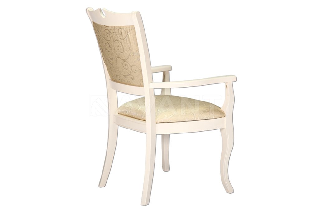 Стул обеденный деревянный ROYAL с подлокотниками (молочный / обивка A168B)