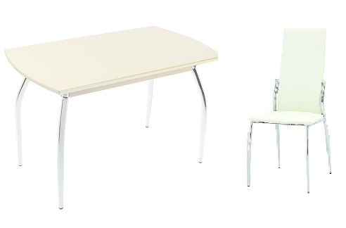изготовлен из ЛДСП. Стойки стола металлические, покрытие - хром.