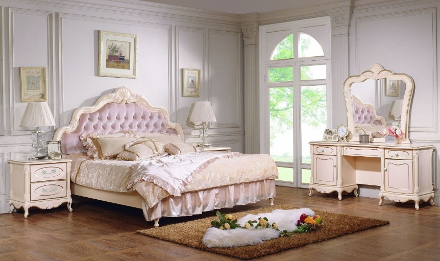 декор в виде витого узора по контуру изделий превращает спальню Аврора в
