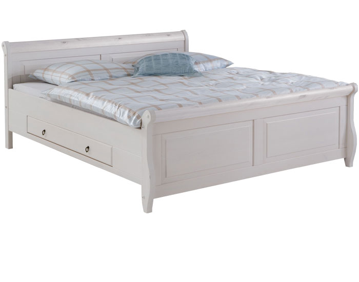 Это удобная большая кровать с двумя выдвижными ящиками, которые находятся с двух сторон кровати. Классическое исполнение модели позволяет преобразить интерьер помещения. Модель дополнена невысокой спинкой, которая будет защищать настенное покрытие от повреждений. Этот предмет интерьера превосходен и с точки зрения дизайна, и с точки зрения своих размеров. Кровать рассчитана на долгий срок службы, потому что произведена из натурального дерева.