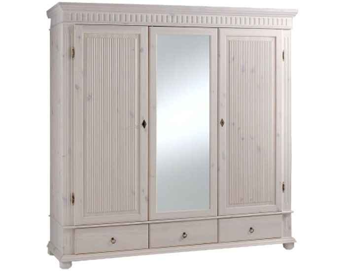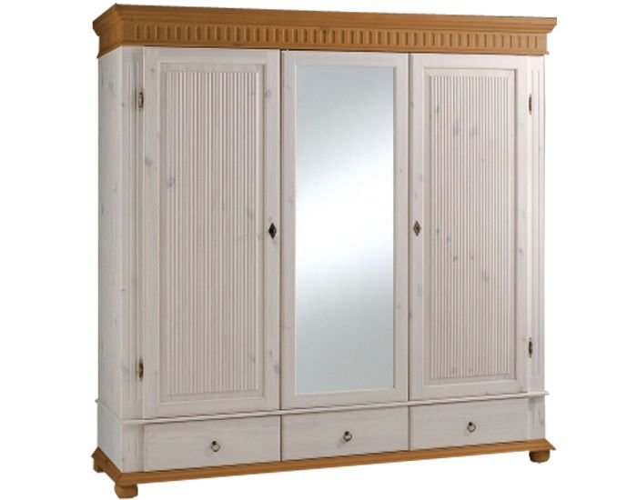 Мебель из коллекции «Мальта-Хельсинки» отличается превосходным внешним видом и достаточной вместительностью. В самом низу шкафа имеются 3 ящика на шариковых направляющих, при этом задняя стенка и дно ящиков изготовлены из плотной фанеры. Одна половина шкафа имеет 3 полки, а две другие комплектуются штангой для одежды. 2 двери деревянные с филенкой, 1 дверь зеркальная (можно без зеркала).