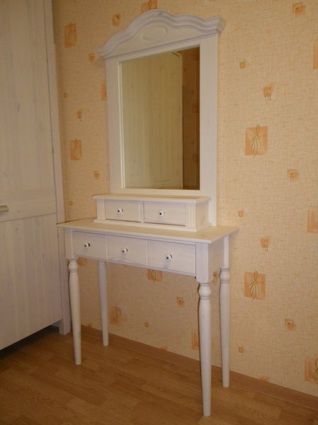 Òóàëåòíûé ñòîëèê «Êîíñîëåà» - îòëè÷íûé îáðàçåö ñòèëüíîé ìåáåëè. Ìîäåëü âûïîëíåíà â ïðèâëåêàòåëüíîì êëàññè÷åñêîì ñòèëå, à çíà÷èò, îíà âïèøåòñÿ ïðàêòè÷åñêè â ëþáîé èíòåðüåð ñïàëüíè. Êîíñòðóêöèÿ ñîñòîèò èç òðåõ ìèíèàòþðíûõ âûäâèæíûõ ÿùèêîâ è íåáîëüøîé ñòîëåøíèöû, óñòàíîâëåííîé íà èçÿùíûå íîæêè.