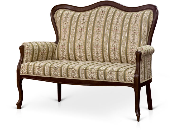 Диван 2-х местный. Мебель изготовлена из массива древесины ценных пород с применением передовой технологии и новейших методов отделки поверхности. Ручная резьба.