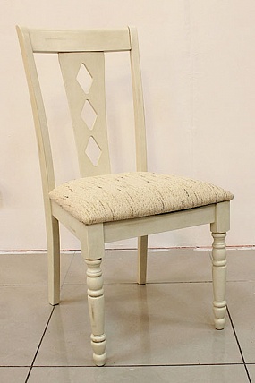деревянный с мягкой сидушкой. Выполнен