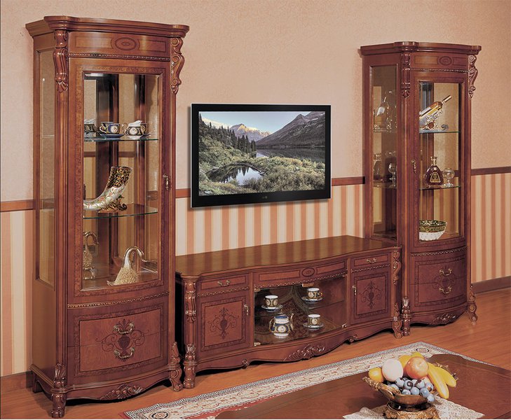 выдвижные ящички для аксессуаров и место для аудио и видео аппаратуры.