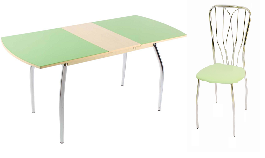 Стол обеденный раздвижной 5.4 со стеклянными вставками. Стеклянные вставки - стекло 4 мм. Стойки стола металлические, покрытие - хром. Дизайн обработки стекла выполнен методом покраски.