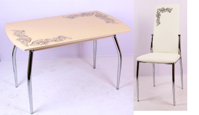 изготовлен из ЛДСП. Стойки стола металлические, покрытие - хром.