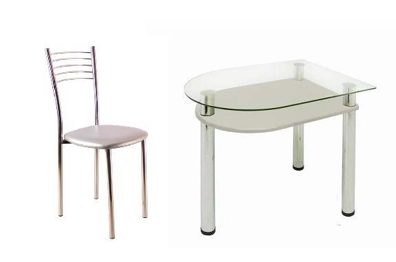 прозрачной стеклянной столешницей расположена полочка из МДФ цвета серый