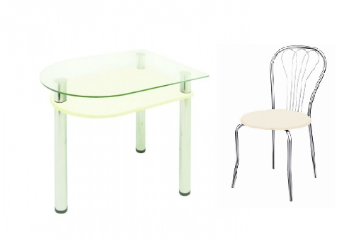 современный стол. Под прозрачной стеклянной столешницей расположена полочка