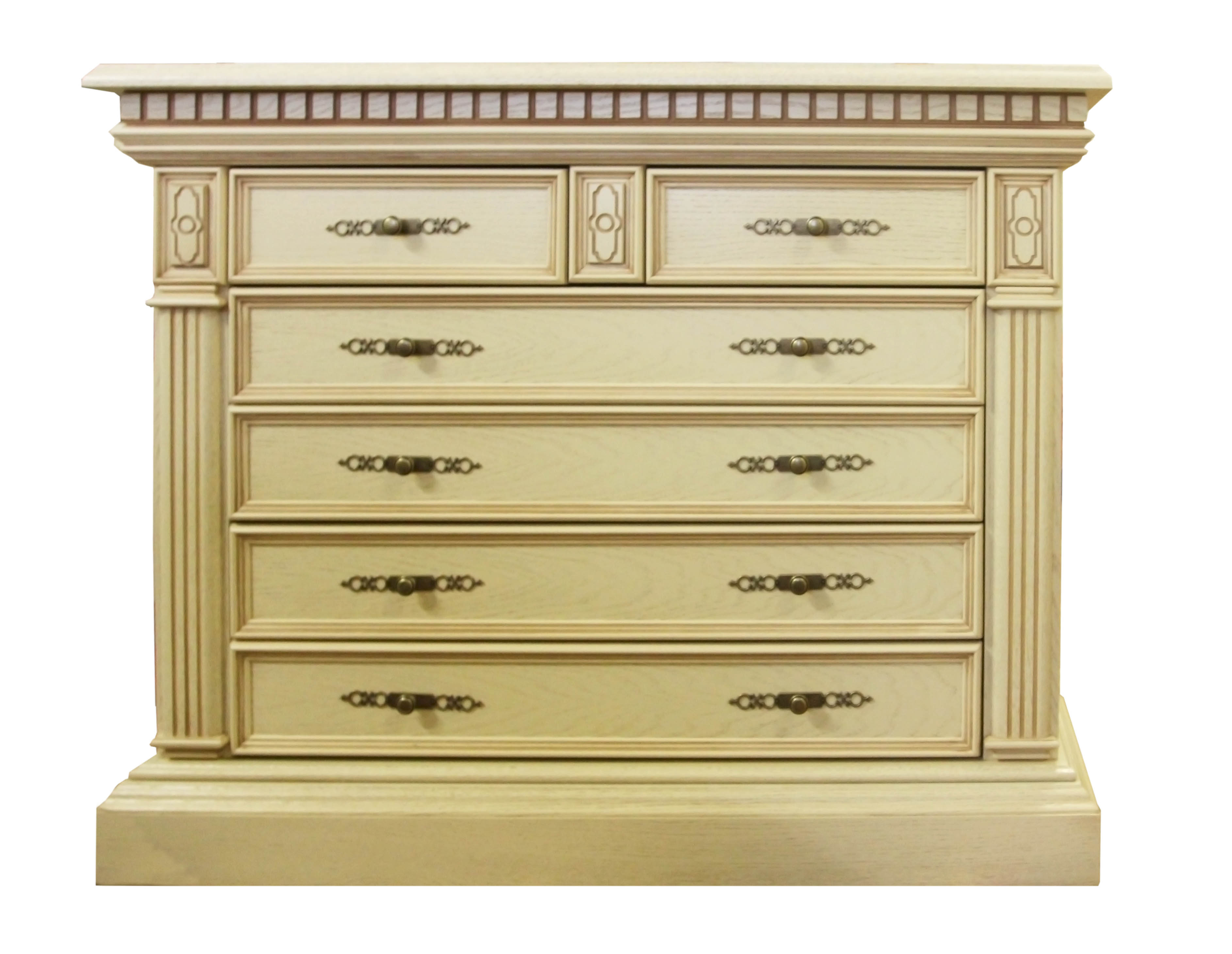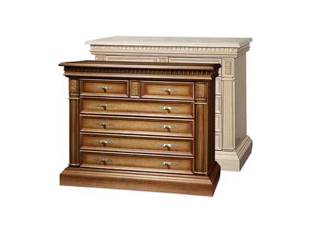 резьбой под верхней крышкой комода.