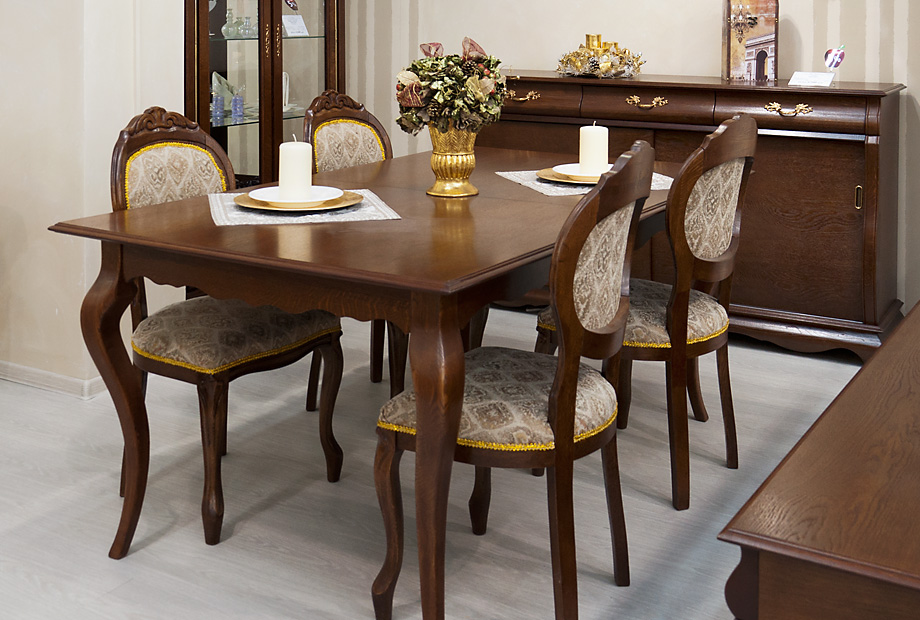 îáåäåííûé ñòîë íà ãíóòûõ ðåçíûõ íîæêàõ èç êîëëåêöèè "Îñêàð",