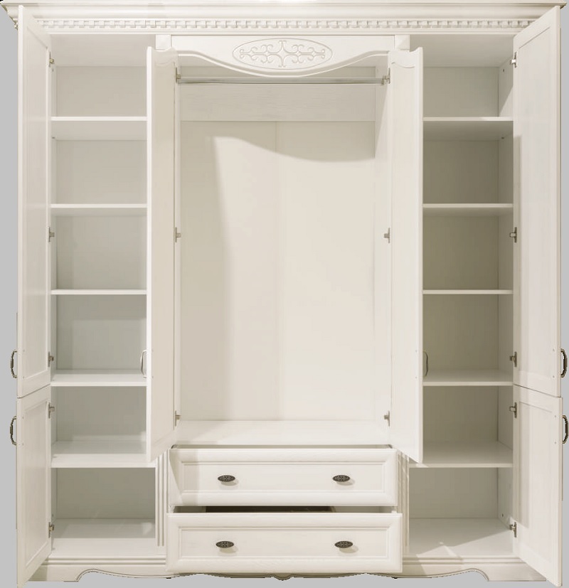 Шкаф Афина очень вместителен и незаменим для хранения белья, одежды, предметов туалета и множества других, не менее важных в хозяйстве вещей. Дополнительный декор на фасаде придает изысканность данной модели.