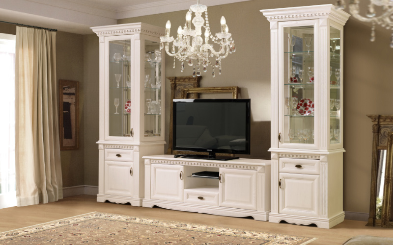 Шкаф может быть выполнен в разных отделках: давиль, каштан, черешня, темный орех, белая эмаль, слоновая кость, ваниль.