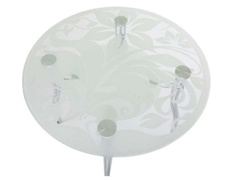 Стеклянный стол Феникс К- компактный обеденный стол из закаленного стекла прекрасное решение для маленькой кухни. Столешница из прозрачного стекла с матовым узором, нижняя полка выполнена из матового стекла. Подстолье и ножки выполнены из хромированного металла (двойное покрытие хромом). На ножках установлены регулировочные винты для дополнительной устойчивости на неровных поверхностях. Красивый и стильный стол круглой формы станет украшением вашей кухни.