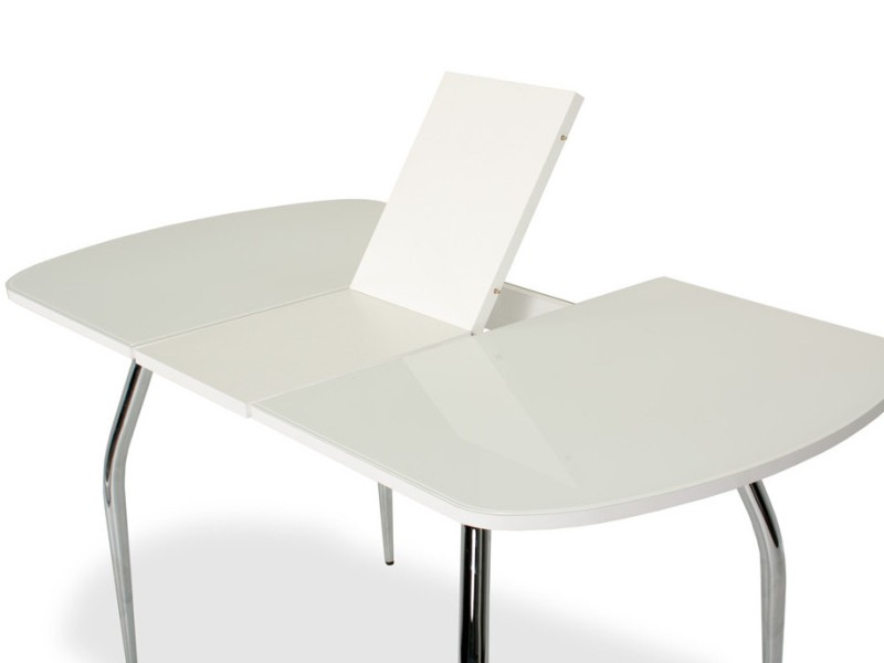 Обеденный раздвижной стол Чикаго СТ (6191) - креативный обеденный стол. Большим выбором сочетания цветов (стекло/ЛДСП). Механизм раскладки- синхронно -раздвижной (бабочка). В разложенном виде стеклянные половинки столешницы разделяет вставка из ДСП. Интересное сочетание в исполнение столешницы ДСП и закаленного стекла придаст шарм вашей кухне.