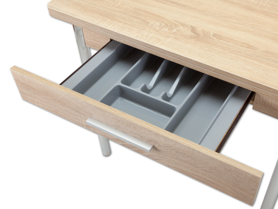 Cтол Руан (6194) с ящиком - столешница выполнена из ЛДСП, ноги металлические цвета металика, подстолье из ЛДСП. Современный дизайн и округлые формы ножек придадут стиль и завершенность вашему интерьеру.