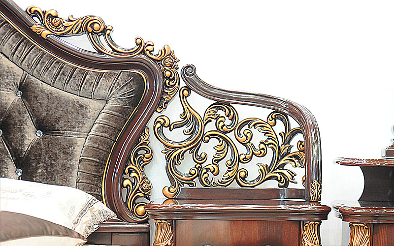 кровать, тумбочки, комод и туалетный столик имеют очень красивые резные