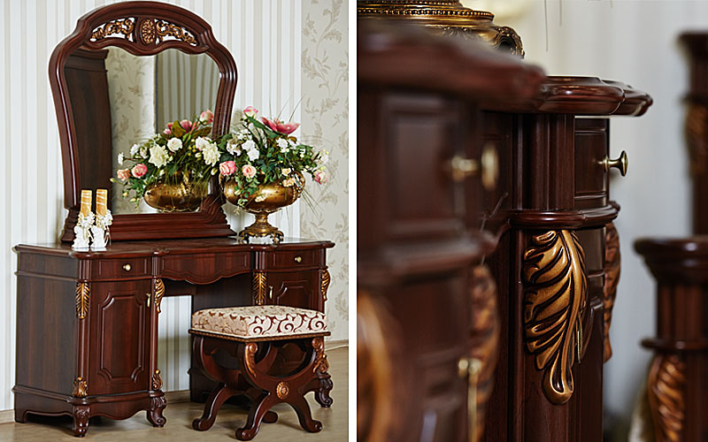 освобождению от переживаний и повседневных забот. В комплект входит шкаф 4-х дверный, кровать, тумба прикроватная и стол туалетный с зеркалом.