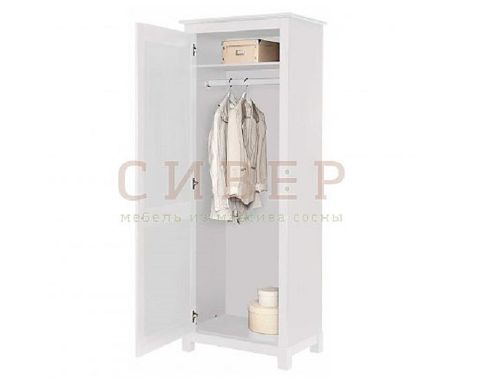 Шкаф для одежды Рауна-100 (белый воск) -массив сосны. В шкафу полка и ниже штанга для вешалок.