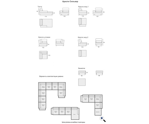 Модули «Ариэти Сильвер» подойдут как для городской квартиры, так и для коттеджа или загородного дома. Это прекрасное решение для гостиной, в которой собирается много человек, для семейных вечеров и дружеских встреч. Этот диван непременно станет ярким акцентом, который будет привлекать к себе внимание и делать интерьер незабываемым, привнесет в Ваш дом живости и яркости, добавит гармонии и стиля. Он настолько красив и удобен, что на нем хочется проводить все свое свободное время, просматривая любимое кино, читая интересную книгу или разговаривая с близкими людьми. Хотите устроить в своем доме уголок для комфортного отдыха? Модульный диван «Ариэти Сильвер» — Ваш идеальный выбор!